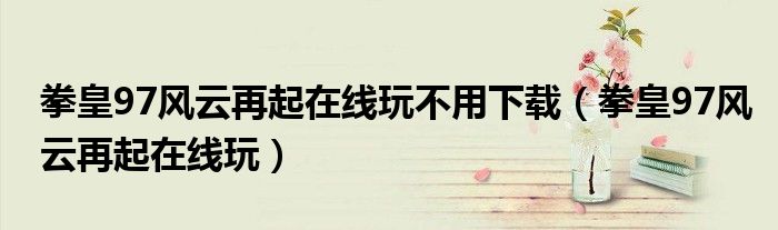 拳皇97风云再起在线玩不用下载(拳皇97风云再起在线玩)