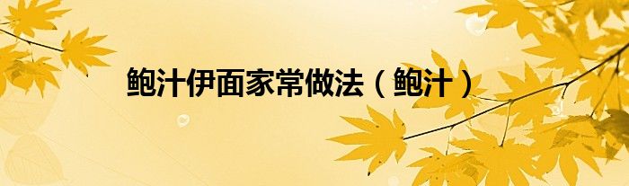 关于鲍汁伊面家常做法,鲍汁这个很多人还不知道,今天菲菲来为大家解答以上的问题,现在让我们一起来看看吧!