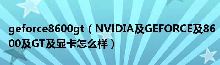 6,显卡Nvidia GeForce 8600 GT是什么意思 :NVIDIA代表公司名字是现时主流的显卡公司GeForce 8600GT 是显卡型号还有很多例如GeForce 9500GT ,GeForce 9600GT ,GeForce 9800GT ...等等DDR3就是显卡里的记亿体型号一般是用DDR2和DDR3,DDR3比较新速度也较快我们分别显卡性能那张较好,通常是先看它的形号再看它的(GPU)核心频率是多小,正常是550-600,600以上较快接著看记亿体型号和显存频率和容量是多小核心位宽(bit) 现时一般是128和256 256会较好如NVIDIA GeForce 8600GT 核心位宽(bit) 256 显存位宽(bit) 128 标配显存类型 GDDR3 核心频率(MHz) 540 显存频率(MHz) 1400 对於入门显卡来说已经不错了 如你的CPU是双核心,已可运行大部份主流游戏了