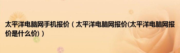 大家好,小常来为大家解答以上问题。太平洋电脑网手机报价,太平洋电脑网报价(太平洋电脑网报价是什么价)很多人还不知道,现在让我们一起来看看吧!