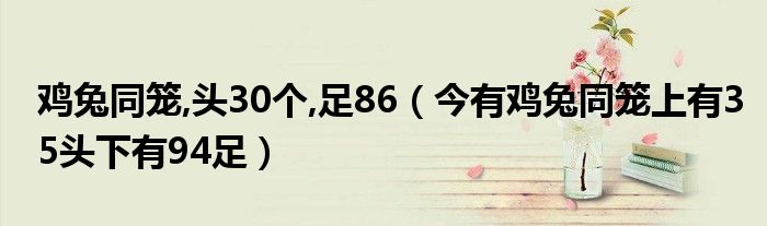 关于鸡兔同笼,头30个,足86,今有鸡兔同笼上有35头下有94足这个很多人还不知道,今天菲菲来为大家解答以上的问题,现在让我们一起来看看吧!