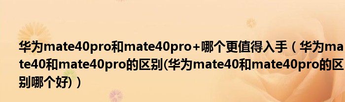大家好,小常来为大家解答以上问题。华为mate40pro和mate40pro+哪个更值得入手,华为mate40和mate40pro的区别(华为mate40和mate40pro的区别哪个好)很多人还不知道,现在让我们一起来看看吧!
