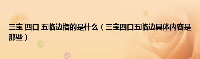 关于三宝 四口 五临边指的是什么,三宝四口五临边具体内容是那些这个很多人还不知道,今天菲菲来为大家解答以上的问题,现在让我们一起来看看吧!