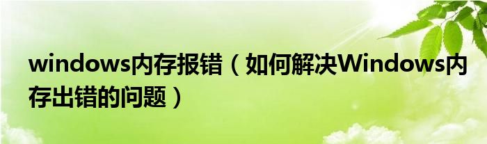 大家好,今天小悦来为大家解答以上问题。windows内存报错,如何解决Windows内存出错的问题很多人还不知道,现在让我们一起来看看吧!
