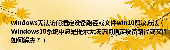 大家好,今天小悦来为大家解答以上问题。windows无法访问指定设备路径或文件win10解决方法,Windows10系统中总是提示无法访问指定设备路径或文件如何解决?很多人还不知道,现在让我们一起来看看吧!