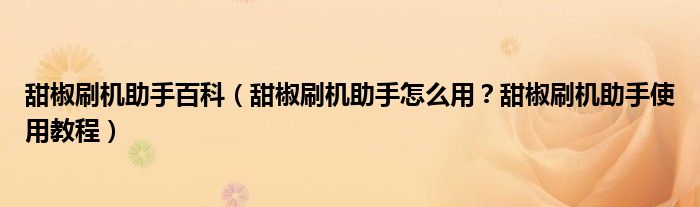 大家好,今天小悦来为大家解答以上问题。甜椒刷机助手百科,甜椒刷机助手怎么用?甜椒刷机助手使用教程很多人还不知道,现在让我们一起来看看吧!