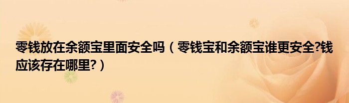 大家好,今天小悦来为大家解答以上问题。零钱放在余额宝里面安全吗,零钱宝和余额宝谁更安全?钱应该存在哪里?很多人还不知道,现在让我们一起来看看吧!