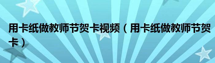用卡纸做教师节贺卡视频(用卡纸做教师节贺卡)