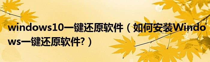 大家好,今天小悦来为大家解答以上问题。windows10一键还原软件,如何安装Windows一键还原软件?很多人还不知道,现在让我们一起来看看吧!