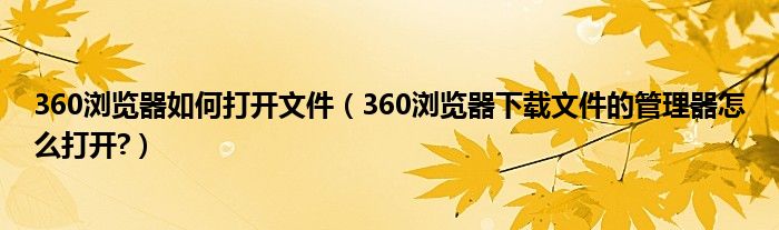 360浏览器如何打开文件(360浏览器下载文件的管理器怎么打开?)