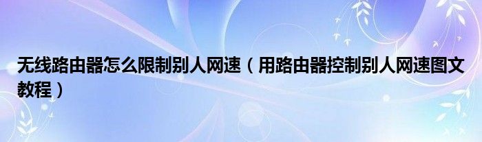 大家好,今天小悦来为大家解答以上问题。无线路由器怎么限制别人网速,用路由器控制别人网速图文教程很多人还不知道,现在让我们一起来看看吧!