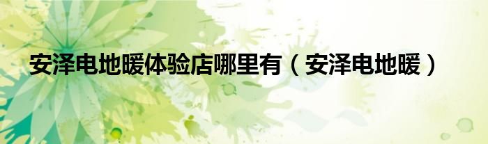 大家好,小飞来为大家解答以上问题,安泽电地暖体验店哪里有,安泽电地暖很多人还不知道,现在让我们一起来看看吧!