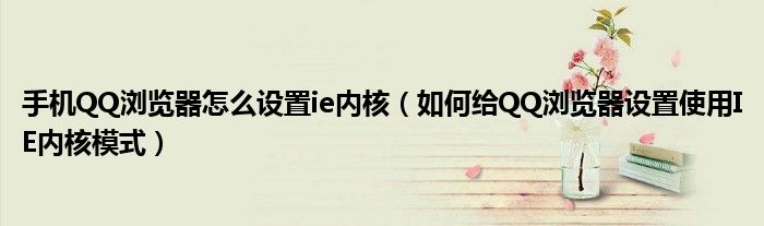 大家好,今天小悦来为大家解答以上问题。手机QQ浏览器怎么设置ie内核,如何给QQ浏览器设置使用IE内核模式很多人还不知道,现在让我们一起来看看吧!