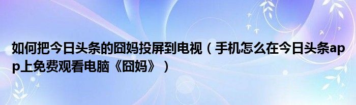 大家好,今天小悦来为大家解答以上问题。如何把今日头条的囧妈投屏到电视,手机怎么在今日头条app上免费观看电脑《囧妈》很多人还不知道,现在让我们一起来看看吧!