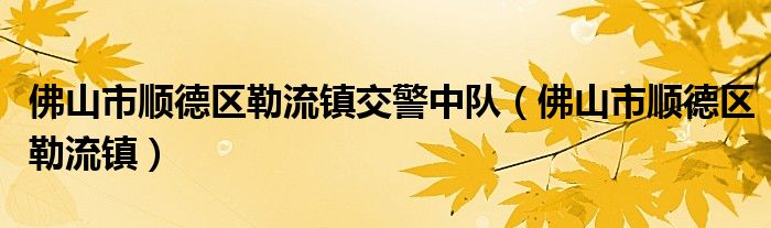 佛山市顺德区勒流镇交警中队,佛山市顺德区勒流镇这个很多人还不知道,小飞来为大家解答以上的问题。现在让我们一起来看看吧!