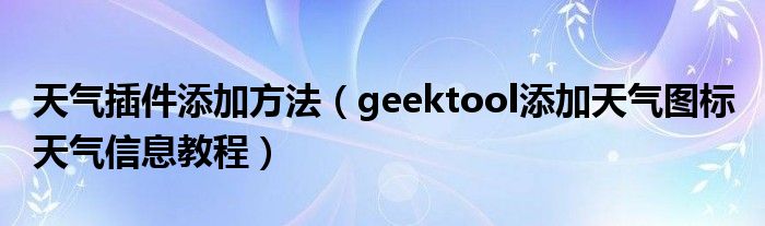 大家好,今天小悦来为大家解答以上问题。天气插件添加方法,geektool添加天气图标 天气信息教程很多人还不知道,现在让我们一起来看看吧!
