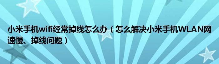 大家好,今天小悦来为大家解答以上问题。小米手机wifi经常掉线怎么办,怎么解决小米手机WLAN网速慢、掉线问题很多人还不知道,现在让我们一起来看看吧!