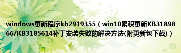 大家好,今天小悦来为大家解答以上问题。windows更新程序kb2919355,win10累积更新KB3189866/KB3185614补丁安装失败的解决方法(附更新包下载)很多人还不知道,现在让我们一起来看看吧!