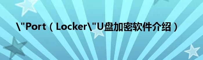 大家好,今天小悦来为大家解答以上问题。"Port,Locker"U盘加密软件介绍很多人还不知道,现在让我们一起来看看吧!