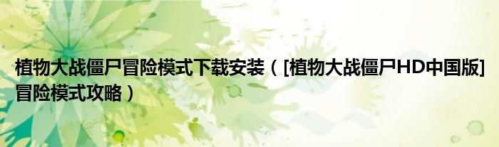 大家好,今天小悦来为大家解答以上问题。植物大战僵尸冒险模式下载安装,[植物大战僵尸HD中国版]冒险模式攻略很多人还不知道,现在让我们一起来看看吧!