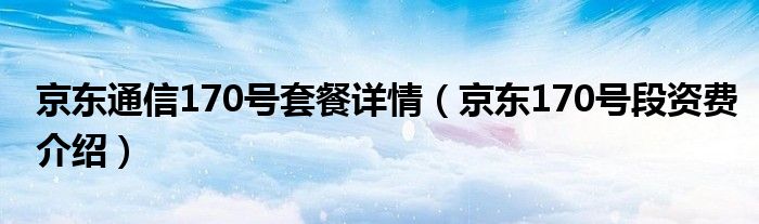 大家好,今天小悦来为大家解答以上问题。京东通信170号套餐详情,京东170号段资费介绍很多人还不知道,现在让我们一起来看看吧!