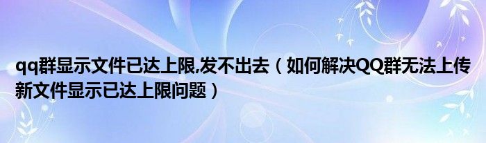 大家好,今天小悦来为大家解答以上问题。qq群显示文件已达上限,发不出去,如何解决QQ群无法上传新文件显示已达上限问题很多人还不知道,现在让我们一起来看看吧!