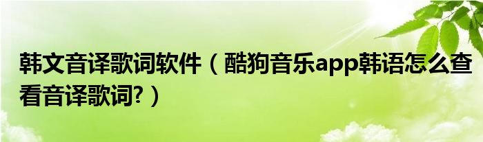 大家好,今天小悦来为大家解答以上问题。韩文音译歌词软件,酷狗音乐app韩语怎么查看音译歌词?很多人还不知道,现在让我们一起来看看吧!