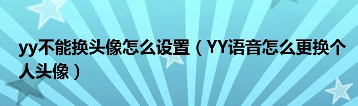 大家好,今天小悦来为大家解答以上问题。yy不能换头像怎么设置,YY语音怎么更换个人头像很多人还不知道,现在让我们一起来看看吧!