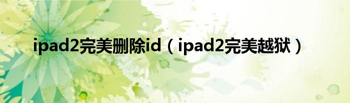 ipad2完美删除id(ipad2完美越狱)