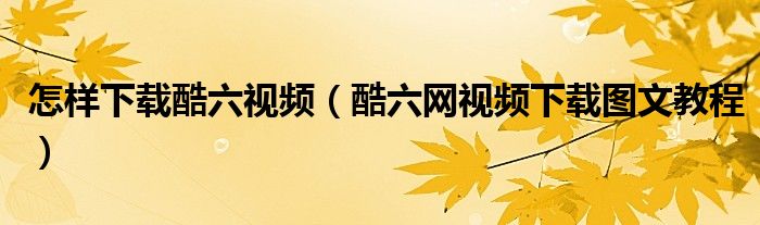 怎样下载酷六视频(酷六网视频下载图文教程)
