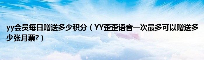 大家好,小太来为大家解答以上问题。yy会员每日赠送多少积分,YY歪歪语音一次最多可以赠送多少张月票?很多人还不知道,现在让我们一起来看看吧!