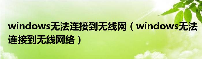 大家好,慧慧来为大家解答以上问题,windows无法连接到无线网,windows无法连接到无线网络很多人还不知道,现在让我们一起来看看吧!