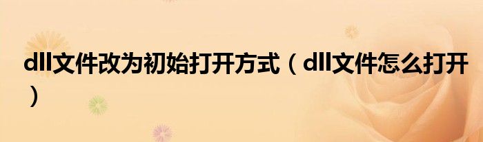 dll文件改为初始打开方式(dll文件怎么打开)