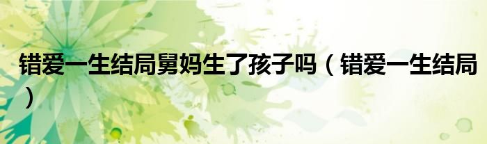大家好,小飞来为大家解答以上的问题。错爱一生结局舅妈生了孩子吗,错爱一生结局这个很多人还不知道,现在让我们一起来看看吧!