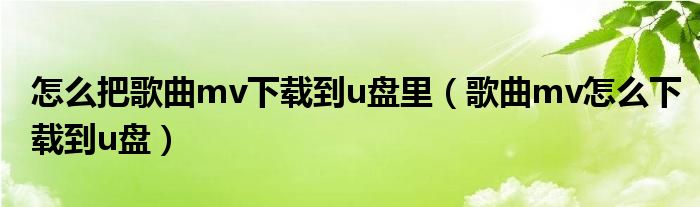 大家好,小晋来为大家解答以下问题,关于怎么把歌曲mv下载到u盘里,歌曲mv怎么下载到u盘很多人还不知道,今天让我们一起来看看吧!