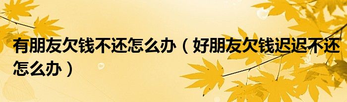 关于有朋友欠钱不还怎么办,好朋友欠钱迟迟不还怎么办这个很多人还不知道,今天菲菲来为大家解答以上的问题,现在让我们一起来看看吧!