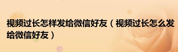 大家好,小晋来为大家解答以下问题,关于视频过长怎样发给微信好友,视频过长怎么发给微信好友很多人还不知道,今天让我们一起来看看吧!