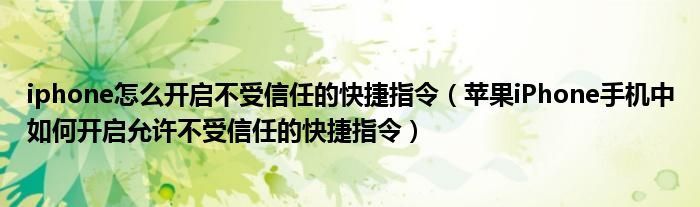 iphone怎么开启不受信任的快捷指令(苹果iPhone手机中如何开启允许不受信任的快捷指令)