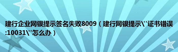 建行企业网银提示签名失败8009(建行网银提示"证书错误:10031"怎么办)