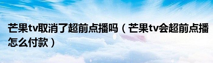 大家好,跳跳为你解答以上问题。芒果tv取消了超前点播吗,芒果tv会超前点播怎么付款这个问题很多人还不知道,现在让我们一起来看看吧!