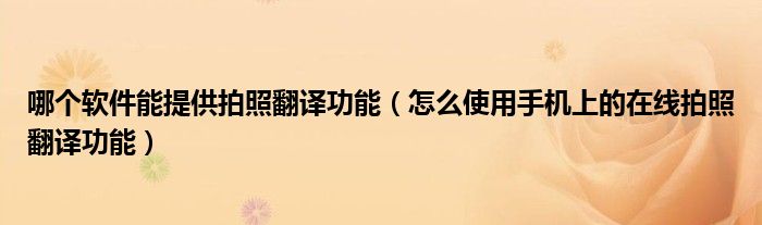 大家好,今天小悦来为大家解答以上问题。哪个软件能提供拍照翻译功能,怎么使用手机上的在线拍照翻译功能很多人还不知道,现在让我们一起来看看吧!