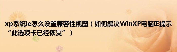 大家好,今天小悦来为大家解答以上问题。xp系统ie怎么设置兼容性视图,如何解决WinXP电脑IE提示“此选项卡已经恢复”很多人还不知道,现在让我们一起来看看吧!