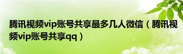 大家好,小晋来为大家解答以下问题,关于腾讯视频vip账号共享最多几人微信,腾讯视频vip账号共享qq很多人还不知道,今天让我们一起来看看吧!