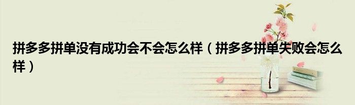 大家好,跳跳为你解答以上问题。拼多多拼单没有成功会不会怎么样,拼多多拼单失败会怎么样这个问题很多人还不知道,现在让我们一起来看看吧!