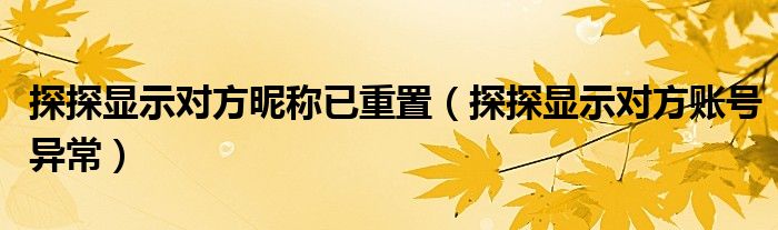 大家好,跳跳为你解答以上问题。探探显示对方昵称已重置,探探显示对方账号异常这个问题很多人还不知道,现在让我们一起来看看吧!