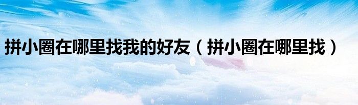 大家好,跳跳为你解答以上问题。拼小圈在哪里找我的好友,拼小圈在哪里找这个问题很多人还不知道,现在让我们一起来看看吧!