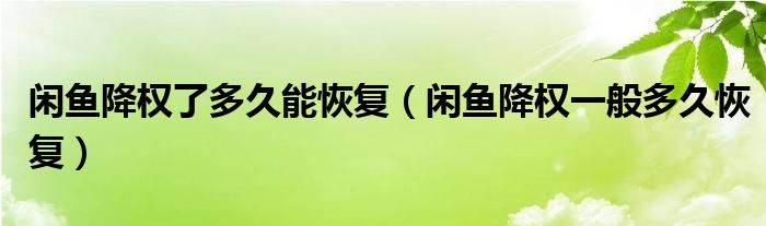 闲鱼降权了多久能恢复(闲鱼降权一般多久恢复)