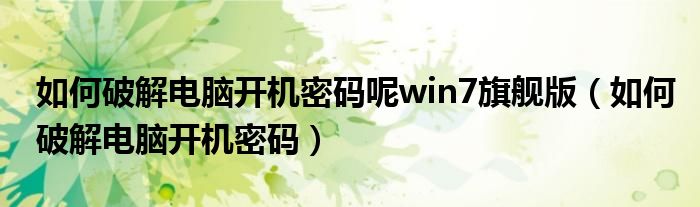 大家好,慧慧来为大家解答以上问题,如何破解电脑开机密码呢win7旗舰版,如何破解电脑开机密码很多人还不知道,现在让我们一起来看看吧!