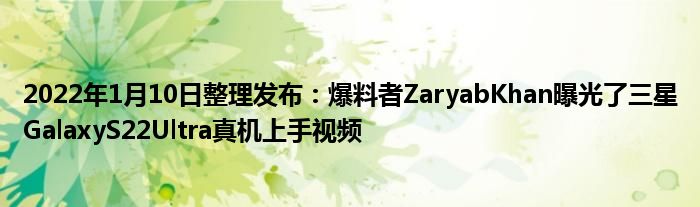 2022年1月10日整理发布:近日,爆料者Zaryab Khan曝光了Galaxy S22 Ultra真机上手视频,并多方位的展示了这款手机的功能。
