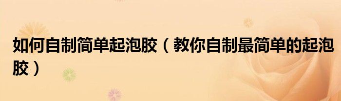 大家好,小晋来为大家解答以下问题,关于如何自制简单起泡胶,教你自制最简单的起泡胶很多人还不知道,今天让我们一起来看看吧!